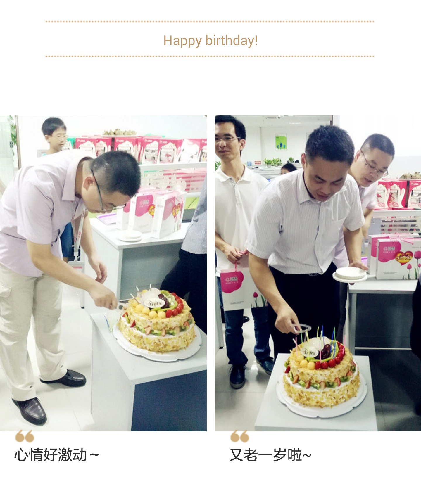 ?在歡快的游戲過(guò)后,深情的戲碼還有一段,“溫情牌”生日蛋糕隆重登場(chǎng),為壽星們獻(xiàn)上了公司的貼心關(guān)懷。